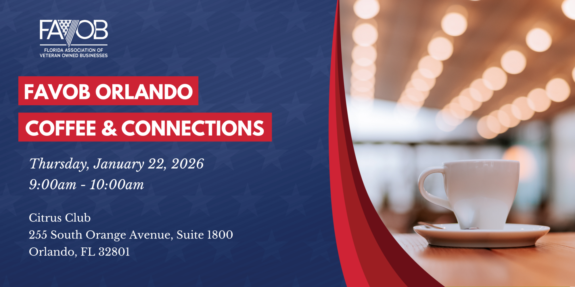 Start your morning with a boost of caffeine and collaboration at Coffee & Connections! Grab a mug and mingle with fellow FAVOB members as we share ideas, build partnerships, and do business together.